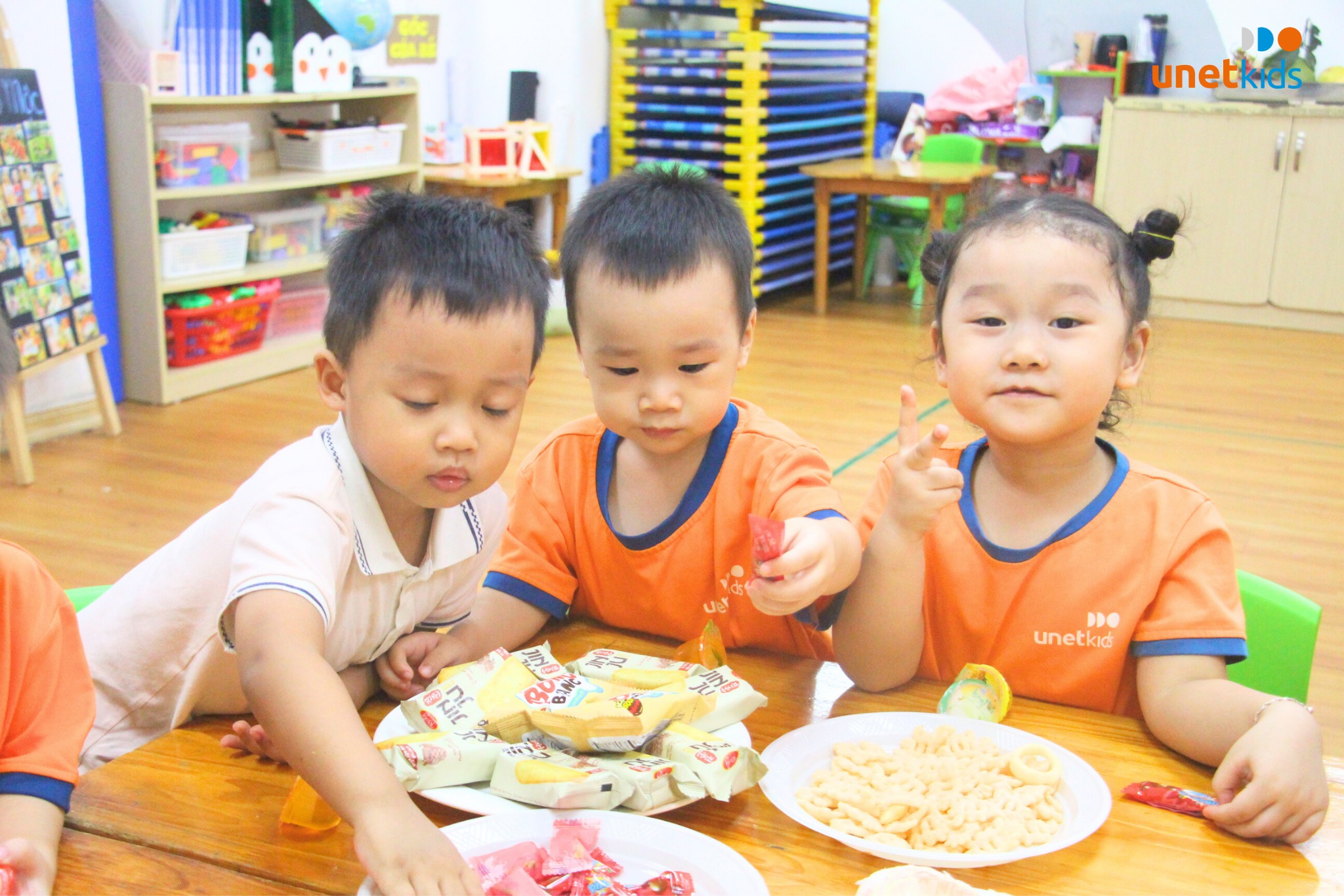 Tiếp đến, các bạn nhỏ của Unetkids đã cùng nhau quây quần bên mâm cỗ Trung thu của lớp mình, với đầy đủ hoa quả, bánh kẹo, đèn lồng - được chính tay các bé cùng phụ huynh và thầy cô chăm chút chuẩn bị. Không khí phá cỗ rộn ràng, ai nấy đều hớn hở thưởng thức, cùng nhau chia sẻ hương vị ngày lễ.