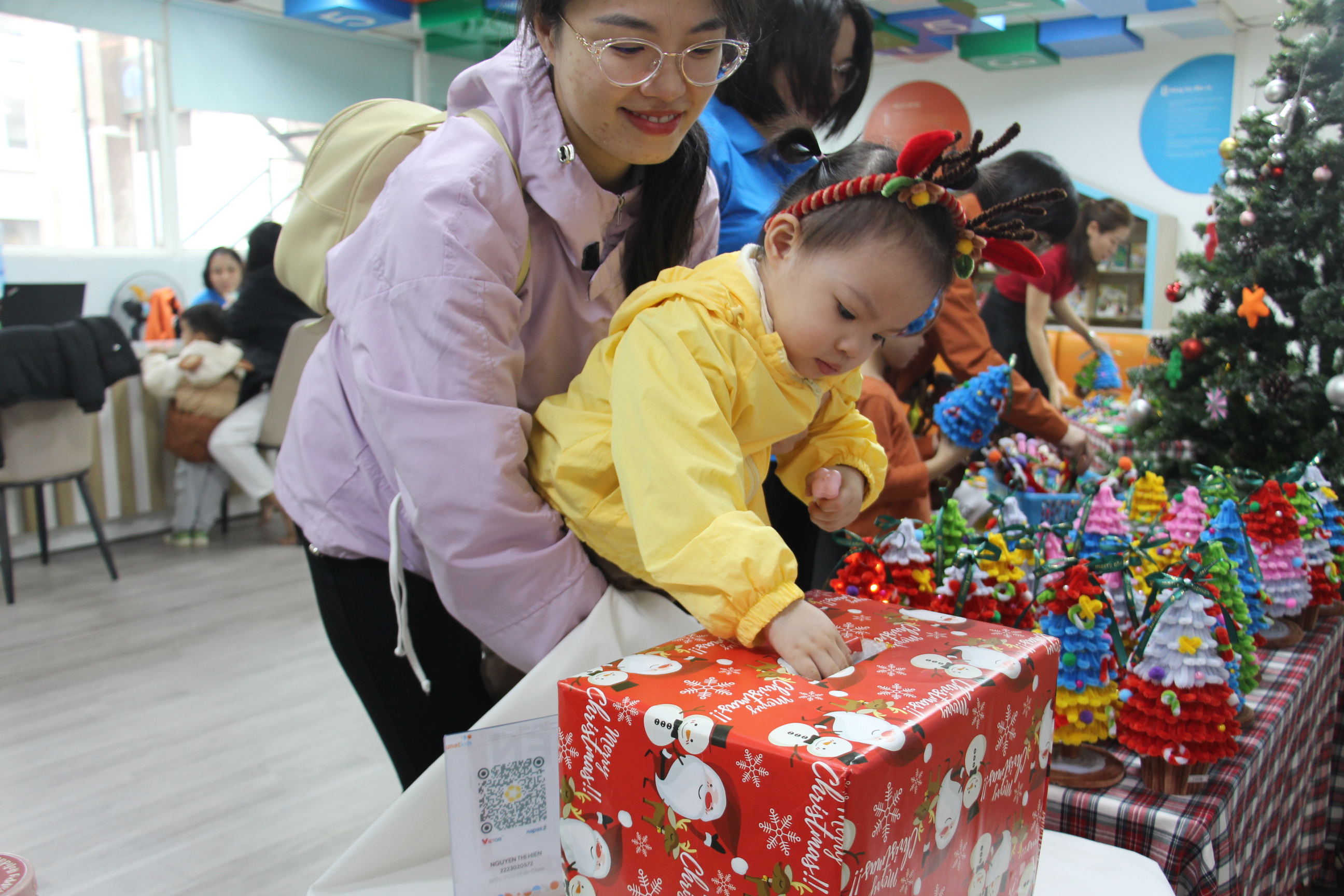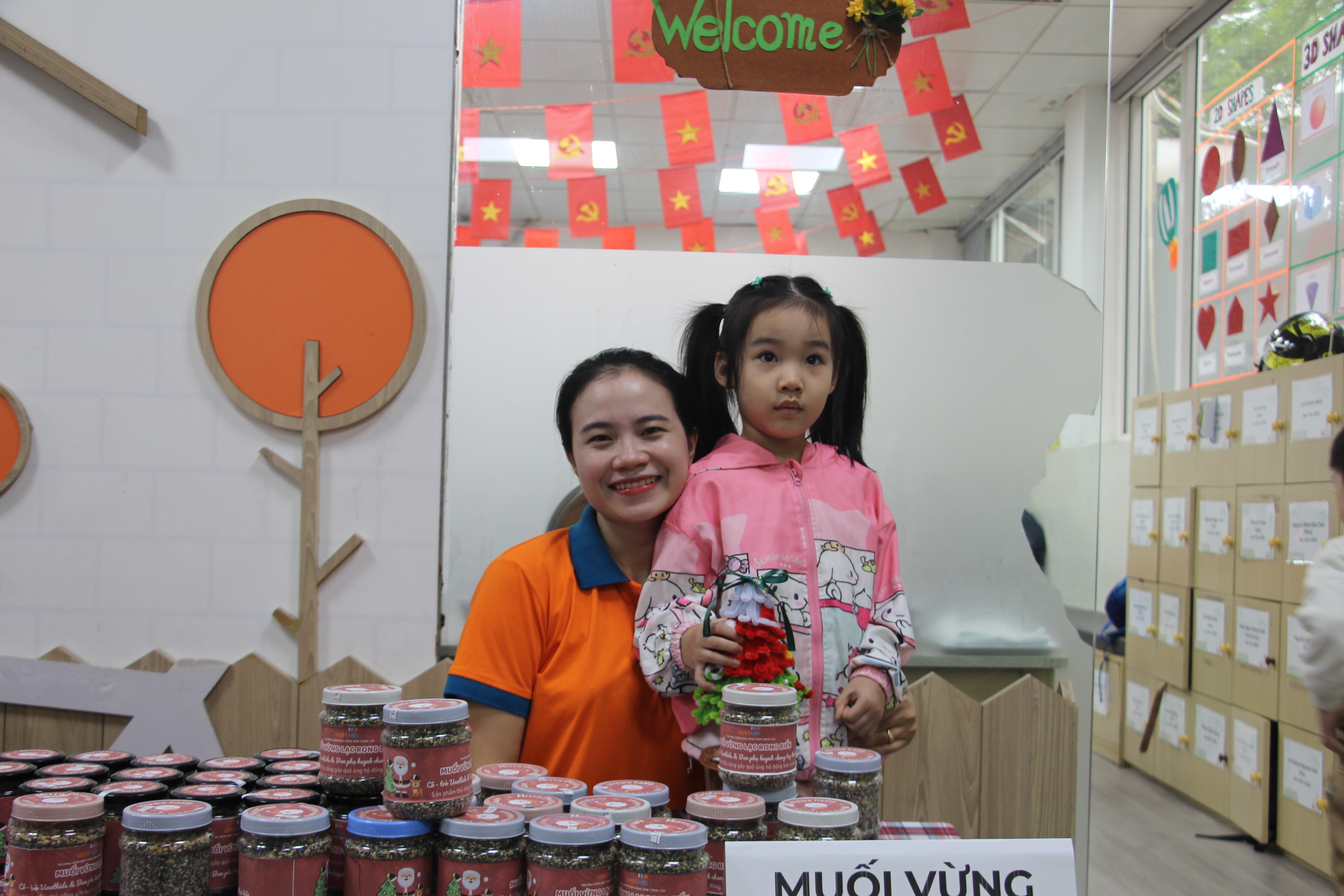Ngày 02/12, gian hàng chính thức diễn ra. Không khí ngay từ sáng sớm đã rất rộn ràng: bố mẹ ghé vào lựa sản phẩm, hỏi han, các con thì tíu tít khoe: “Cái này lớp con làm”.