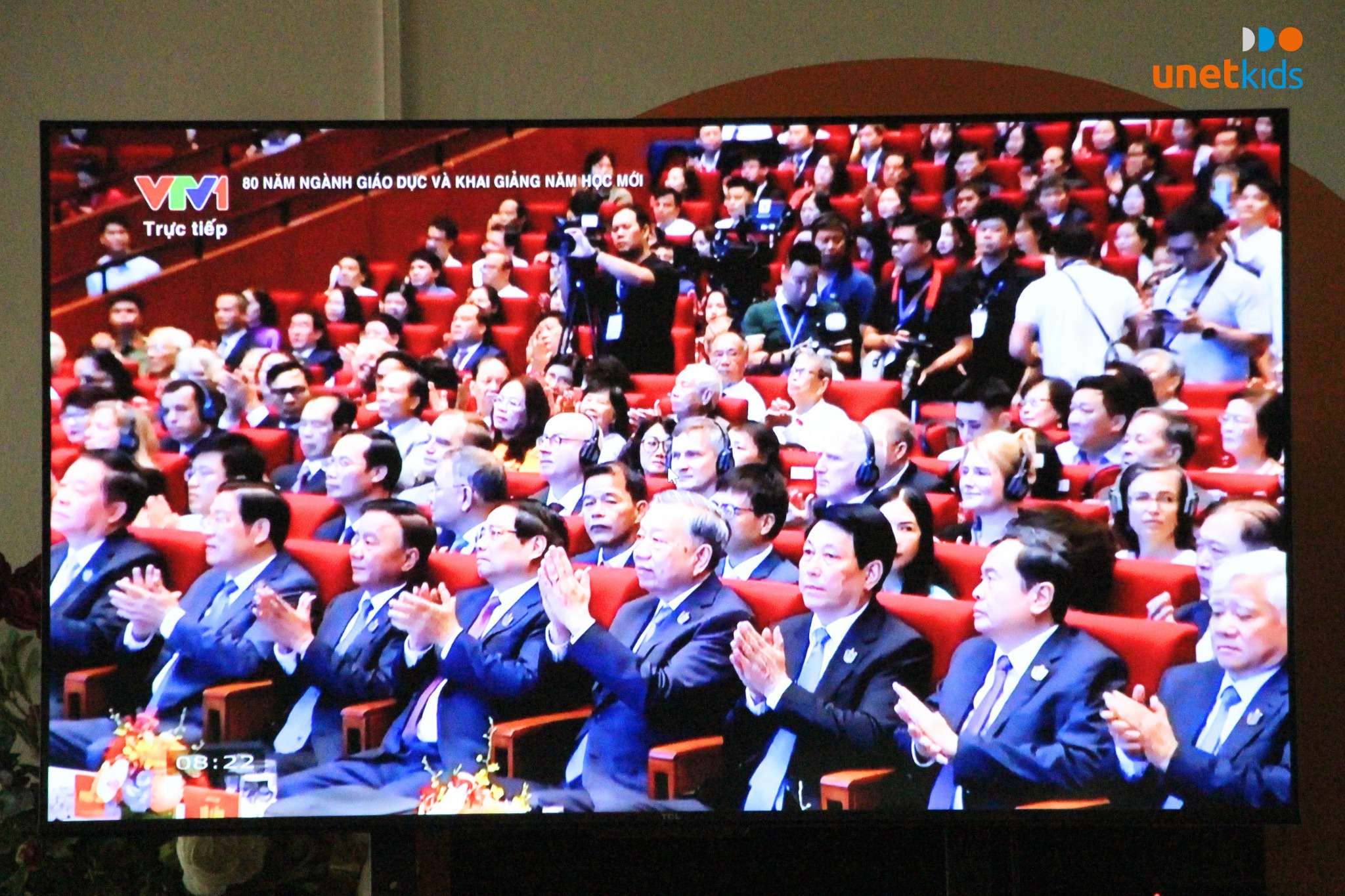 Buổi lễ khai giảng năm nay bắt đầu thật đặc biệt khi các con được cùng hơn 20 triệu bạn nhỏ trên cả nước tham gia nghi thức trực tuyến chung nhân dịp 80 năm thành lập Bộ Giáo dục và Đào tạo. Đó là những giây phút vừa trang nghiêm vừa ý nghĩa, để các con cảm nhận mình là một phần trong đại gia đình học sinh Việt Nam, cùng nhau khởi đầu một năm học mới.