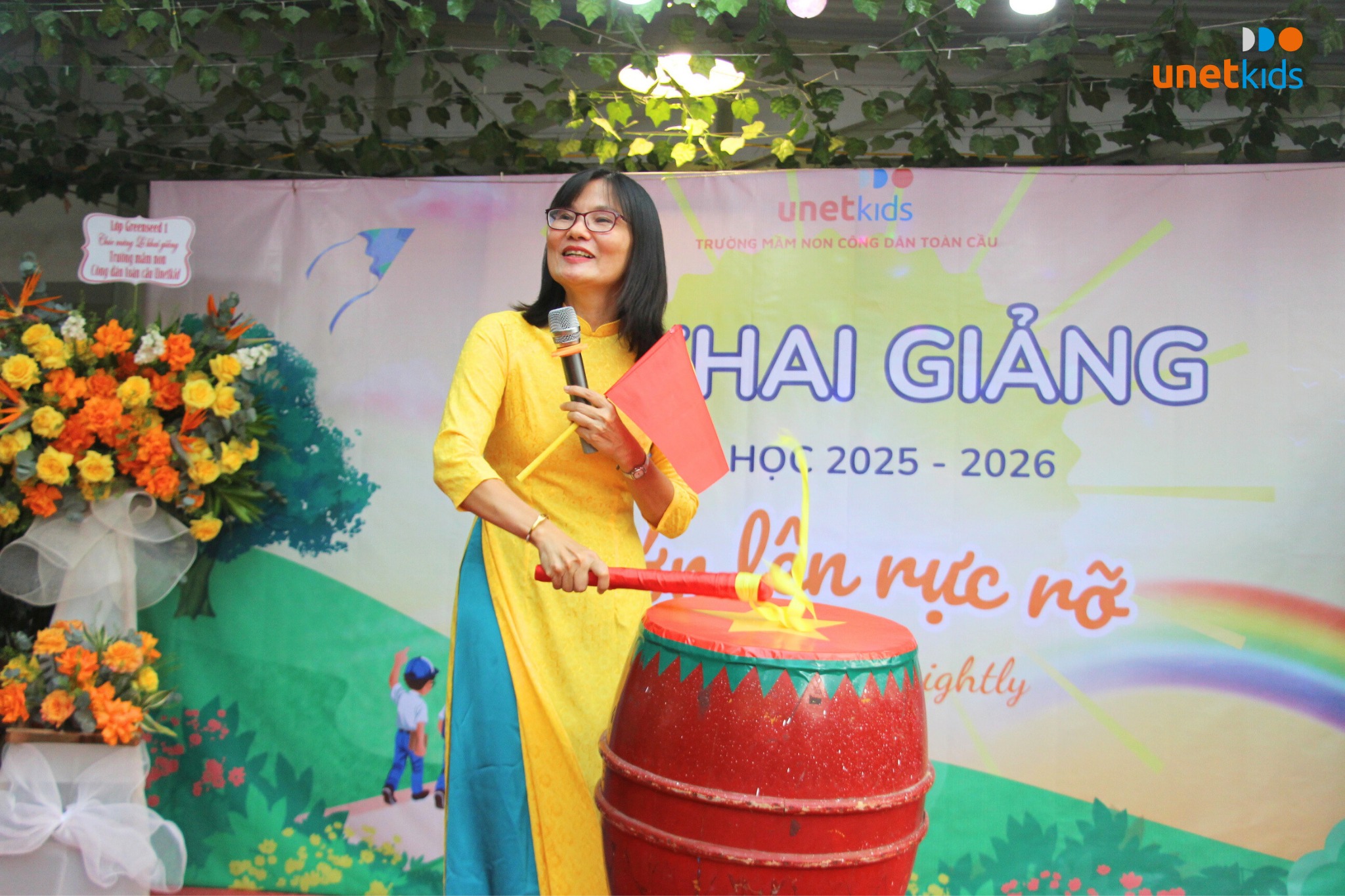 Khi tiếng trống khai trường vang lên, không gian như bừng sáng. Âm thanh rộn rã ấy là lời gọi mời các con bước vào hành trình mới đầy niềm vui và khám phá. Lời chia sẻ từ cô Hiệu trưởng cũng chính là ngọn lửa truyền cảm hứng, tiếp thêm động lực cho cả thầy và trò trong năm học sắp tới.